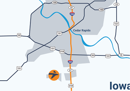 Cedar Rapids is a transportation & logistics hub with CID’s air cargo services complementing the operations of rail and trucking operations, as well as many regional warehouses and distribution centers. CID has excellent access to the interstate highway system and is within a 4.5-hour truck drive of several major cities including Chicago, Minneapolis-St. Paul, Kansas City and St. Louis.
